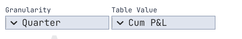 - Cells: Show cumulative P&L (or other selected values)