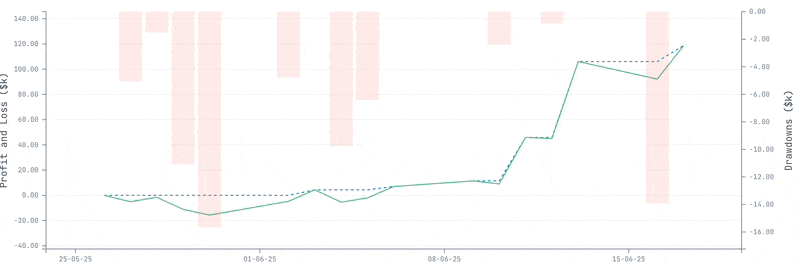- Positive streaks vs drawdowns: Match large drawdowns with attribution to see if Vega spikes or Delta trends were the cause.