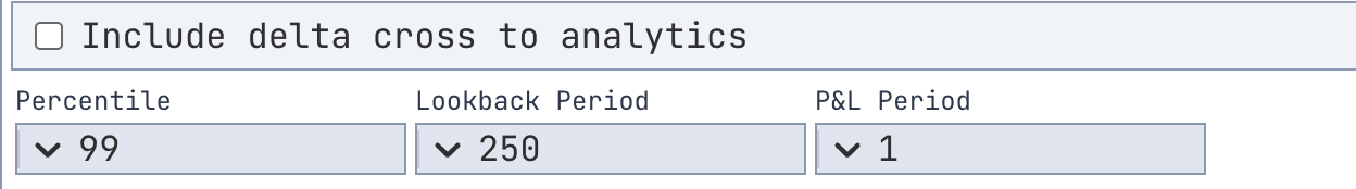 - P&L Period - Choose P&L horizon in days: 1, 2, 3, 5, 7, 10