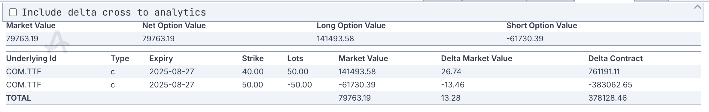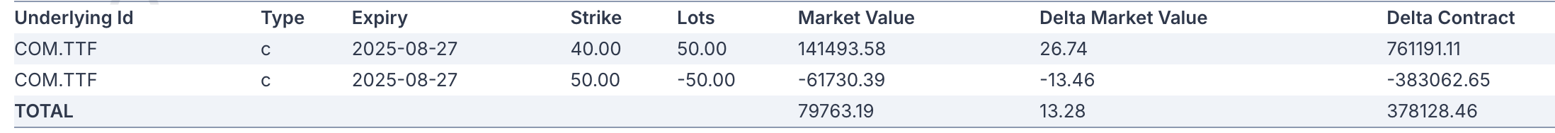 Risk Metrics for TTF Sep-25 40/50 Call Spread