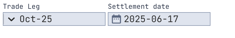 - Trade Leg - Select the expiry or structure leg to inspect (e.g., Sep-25, Oct-25).